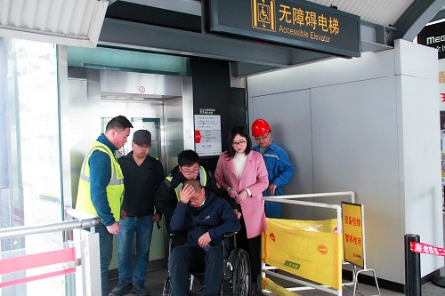 此次直梯困人主要模擬兆豐路在運營過程中2號口無障礙電梯因為設備原因發(fā)生故障,造成轎廂迫停在1樓至2樓中間位置,轎廂內(nèi)2名乘客雖然無傷亡情況,但無法正常進出,車站對故障設備實施緊急處置并通知相關(guān)人員進行搶修,以及開展客流組織引導等工作。