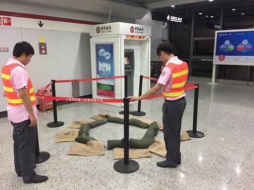 演練主要模擬在車站運(yùn)營期間強(qiáng)降雨、站廳出現(xiàn)不同程度漏水的情況下,車站啟動(dòng)防汛防臺(tái)預(yù)案的情況。車站工作人員在發(fā)現(xiàn)情況后,第一時(shí)間利用沙袋、麻袋、刮水板等應(yīng)急物資對站廳漏水點(diǎn)進(jìn)行防護(hù),阻止其蔓延。同時(shí)密切關(guān)注客流情況,注意客流動(dòng)態(tài),做好聚集在車站及出入口避雨乘客的引導(dǎo)工作。