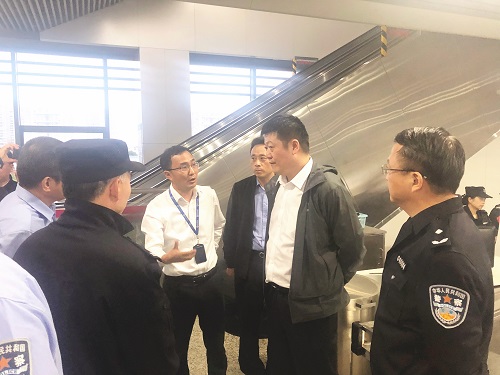 10月23日下午,省廳內(nèi)保總隊(duì)總隊(duì)長薛魁,蘇州市軌交治安分局局長馮炯,昆山市公安局黨委副書記、副局長劉偉一行至軌道公司督導(dǎo)檢查“進(jìn)博”安保維穩(wěn)工作,軌道公司董事長蔣建武陪同檢查。