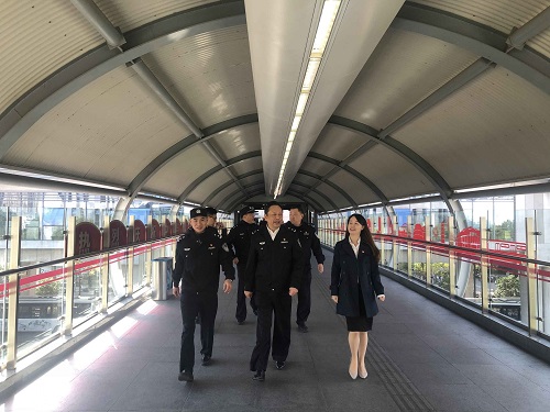 11月9日上午,上海市公安局城市軌道和公交總隊(duì)政委陳鳴強(qiáng)一行至昆山軌道公司督導(dǎo)進(jìn)博會(huì)安保工作,昆山市公交派出所所長胡道春、昆山軌道公司副總經(jīng)理閔荷瓊陪同檢查。