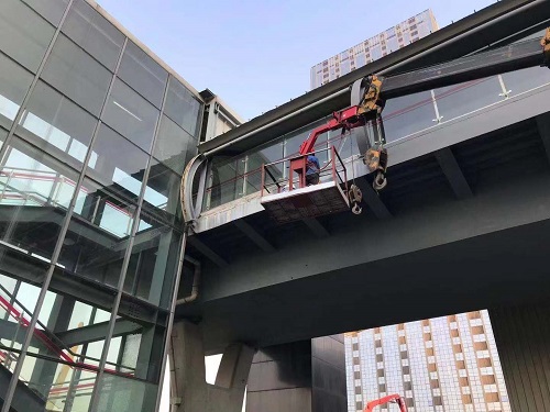 經(jīng)過(guò)多年運(yùn)營(yíng)以后,花橋段三站建筑外層的金屬漆面已出現(xiàn)不同程度的氧化銹蝕問(wèn)題,不僅影響車(chē)長(zhǎng)外側(cè)美觀,還存在安全隱患。軌道公司決定由裝飾裝修專(zhuān)業(yè)工程師牽頭,協(xié)調(diào)相關(guān)人員展開(kāi)修理工作,以保障車(chē)站系統(tǒng)的安全穩(wěn)定運(yùn)行。在準(zhǔn)備外圍維護(hù)與登高作業(yè)防護(hù)措施后,相關(guān)委外人員進(jìn)場(chǎng)檢驗(yàn)開(kāi)始刷漆作業(yè),并對(duì)建筑下方車(chē)輛進(jìn)行引導(dǎo),作業(yè)處下方進(jìn)行油漆滴落防護(hù),車(chē)站作業(yè)時(shí),對(duì)乘客進(jìn)行疏導(dǎo)。