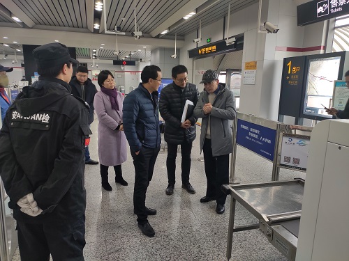 1月9日上午,市反恐辦專職副主任尤學(xué)文一行至軌道公司督查節(jié)前安保工作,交發(fā)集團(tuán)安全總監(jiān)周寧、軌道公司董事長(zhǎng)蔣建武、副總經(jīng)理仝煒陪同檢查。