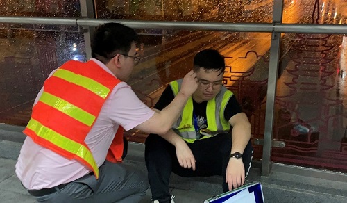 演練模擬高溫天氣下運(yùn)營(yíng)期間兆豐路站乘客在站廳中暑暈倒,客服中心發(fā)現(xiàn)后立即匯報(bào)值班站長(zhǎng),值班站長(zhǎng)立即通知各崗位車站啟動(dòng)非職工傷亡應(yīng)急處置預(yù)案。值班站長(zhǎng)至現(xiàn)場(chǎng)確認(rèn)暈倒乘客情況并做好先期救助,落實(shí)事故現(xiàn)場(chǎng)安全防護(hù)。車控室值班員利用廣播做好乘客信息告知等宣傳工作,并將情況匯報(bào)公司應(yīng)急指揮室,車站站長(zhǎng)等??瓦\(yùn)值班員做好目擊證人挽留工作及120救援人員接應(yīng)工作。站務(wù)員做好圍觀乘客疏散及受影響乘客信息告知工作。