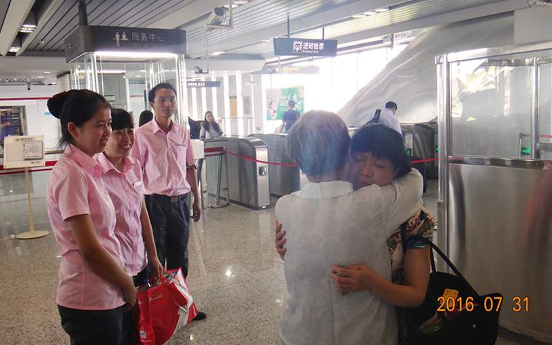 2016年7月31日下午,乘客張女士在花橋地鐵站職工的幫助下,順利找回走散母親。